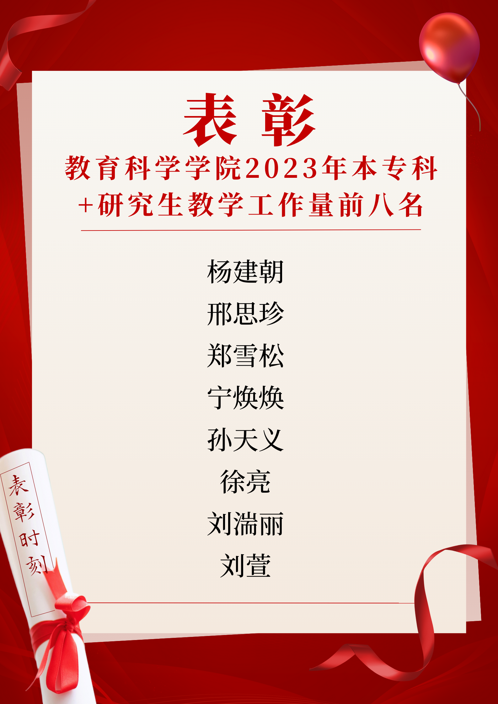 【表彰】太阳成集团tyc122cc2023年本专科+研究生教学工作量前八名