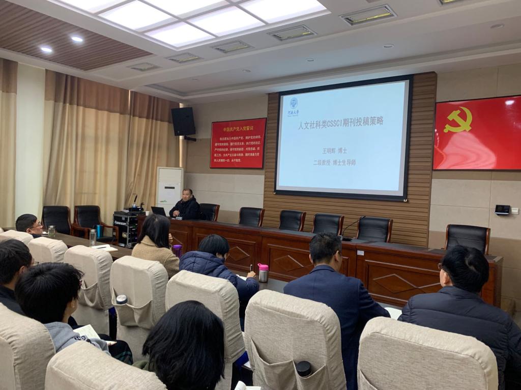 时间:2023-12-03 12:12:04 来源:太阳成集团tyc122cc 作者: 阅读: 次12月3日上午,应太阳成集团tyc122cc邀请,河南大学王明辉教授在教科楼301报告厅作题为“人文社科类CSSCI期刊投稿策略”的学术报告。报告会由该院经理何安明主持,教科院全体教师及部分研究生聆听了报告。