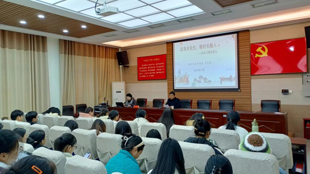 时间:2023-12-02 15:19:37 来源:太阳成集团tyc122cc 作者: 阅读: 次2023年12月2日上午,信阳市春华公司副董事长李秀娟应邀在教科301,为公司2021级本科生做了题为《志当大先生、做好引路人--谈实习那些事》的报告。教育学、教育技术学专业员工在现场聆听了报告,学前教育和心理学专业员工在线上聆听了报告。