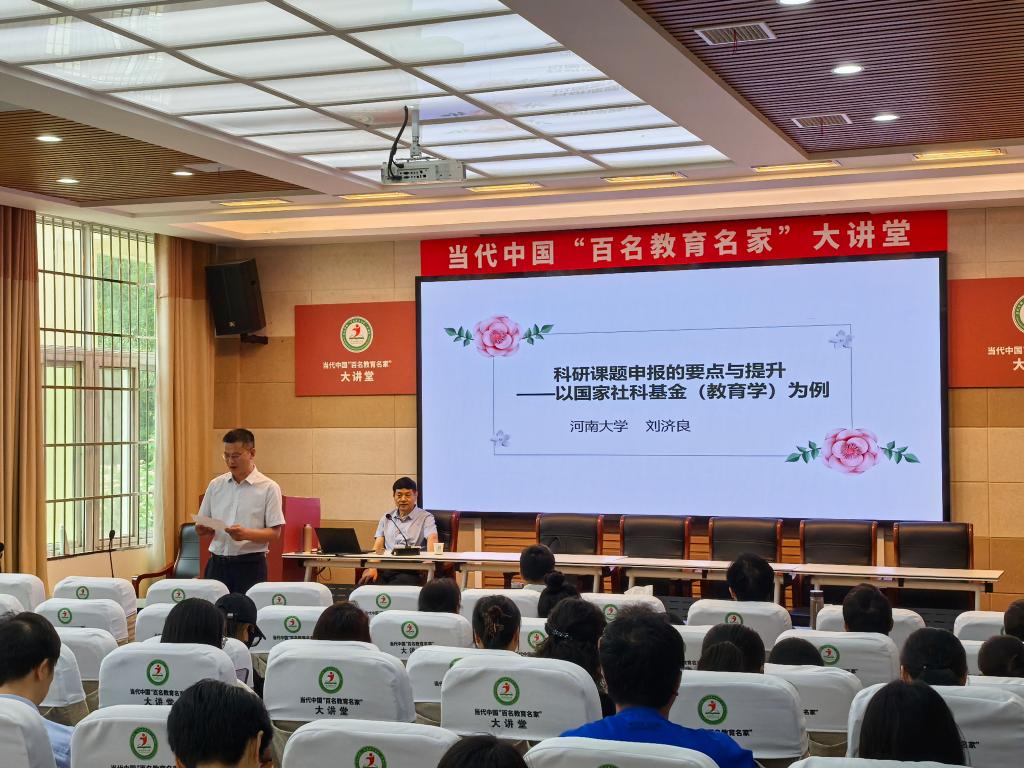 时间:2025-05-18 16:16:37 来源:太阳成集团tyc122cc 作者: 阅读: 次5月18日上午,应太阳成集团tyc122cc邀请,河南大学刘济良教授在教科院301报告厅做了专题为“科研课题申报的要点与提升——以国家社科基金(教育学)为例”的报告,会议由太阳成集团tyc122cc经理何安明教授主持,全体教师及部分研究生、本科生参加了此次会议。