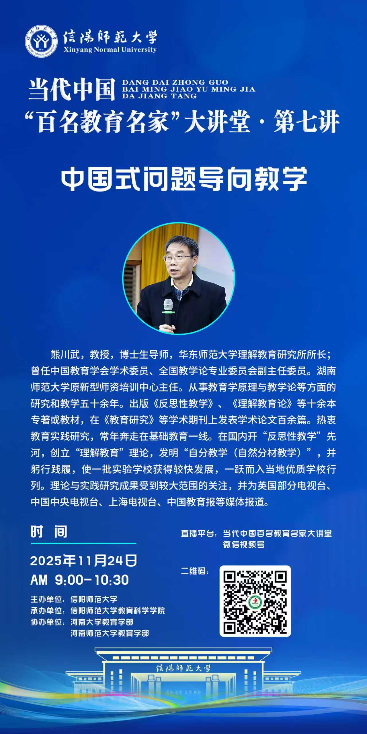 【学术预告】当代中国“百名教育名家”大讲堂·第七讲