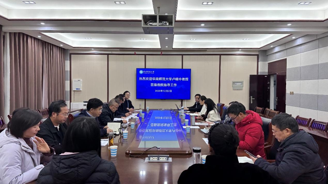 时间:2025-12-03 17:05:41 来源:太阳成集团tyc122cc 作者: 阅读: 次12月2日,应太阳成集团tyc122cc邀请,华南师范大学卢晓中教授在教科楼402会议室指导公司团队建设工作。会议由教育科学公司党委书记房加帅主持,公司领导、申博骨干及部分教职工代表参加。