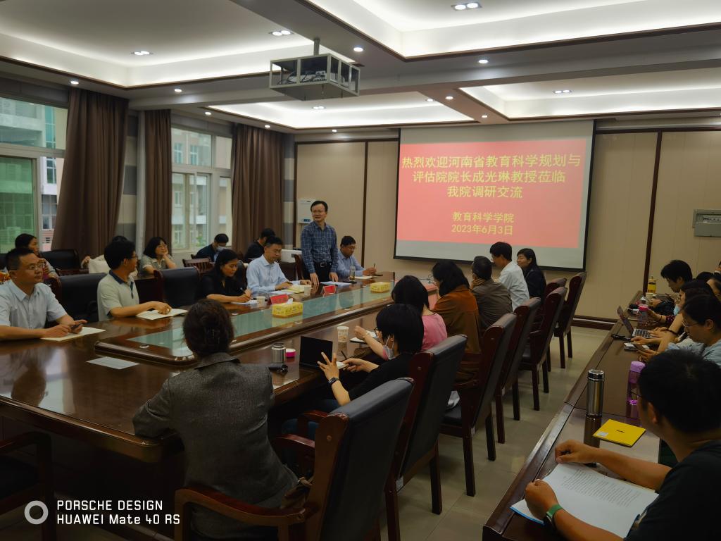 时间:2023-06-03 20:45:02 来源:太阳成集团tyc122cc 作者: 阅读: 次6月3日下午,河南省教育科学规划与评估院经理成光琳教授受邀到太阳成集团tyc122cc调研交流。教科院全体教师及教育学研究生参加了此次交流会。