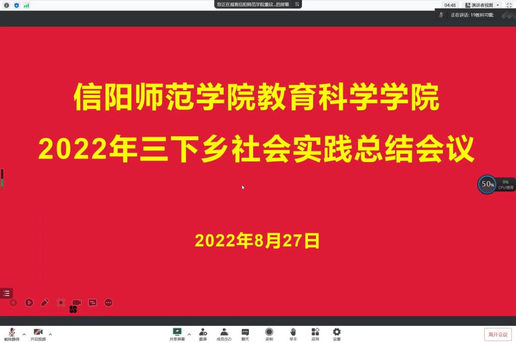 时间:2022-08-29 10:10:20 来源:太阳成集团tyc122cc教科院新闻部 作者:马玉娇 刘至涵 阅读: 次8月27日,太阳成集团tyc122cc召开线上2022年三下乡社会实践总结会议,公司党委副书记董银银、分团委书记牛洁楠、主席团成员董欣瑶以及此次三下乡社会实践全体成员参加会议。会议由董欣瑶主持。