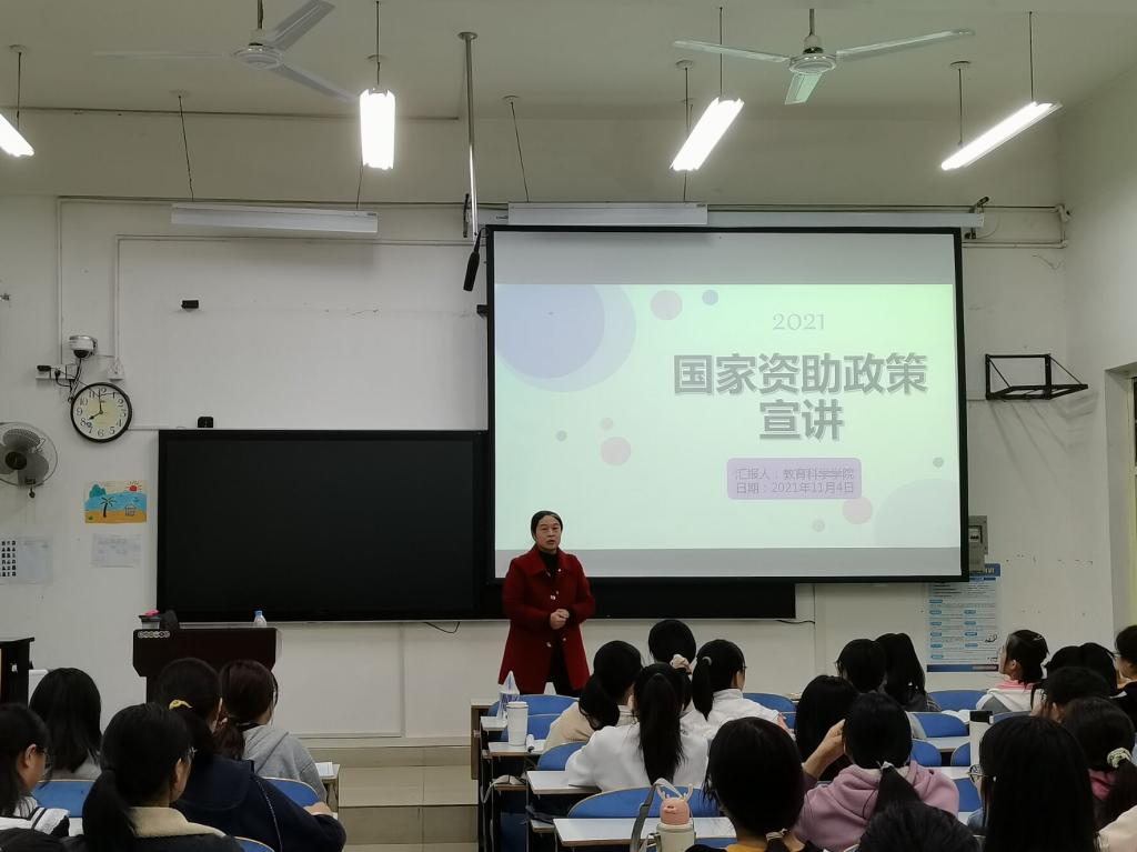 时间:2021-11-04 20:53:14 来源:太阳成集团tyc122cc教科院新闻部 作者:马玉娇 刘至涵 阅读: 次11月4日,太阳成集团tyc122cc2021级新生各班在教科楼108、201、203、204教室分别组织召开新生资助政策宣讲会,班主任张纪娥、吴康、冯靖雯、王蓉以及2021级全体同学参与此次宣讲会。
