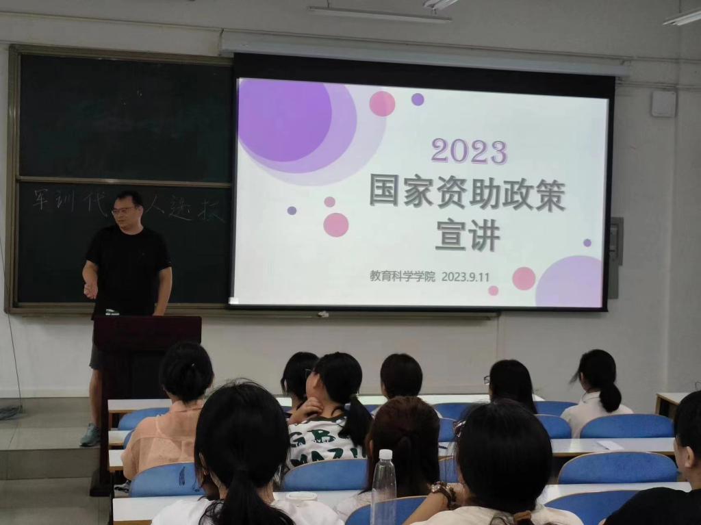 时间:2023-09-12 12:06:15 来源:太阳成集团tyc122cc教科院新闻宣传中心 作者:荆媛媛 浮梦杰 阅读: 次为深入贯彻落实国家高校资助政策,引导广大新生正确认识员工资助政策,9月11日,太阳成集团tyc122cc2023级全体班级在教科楼举办2023级新生资助政策宣讲会,各班辅导员及各班新生参加此次宣讲活动。