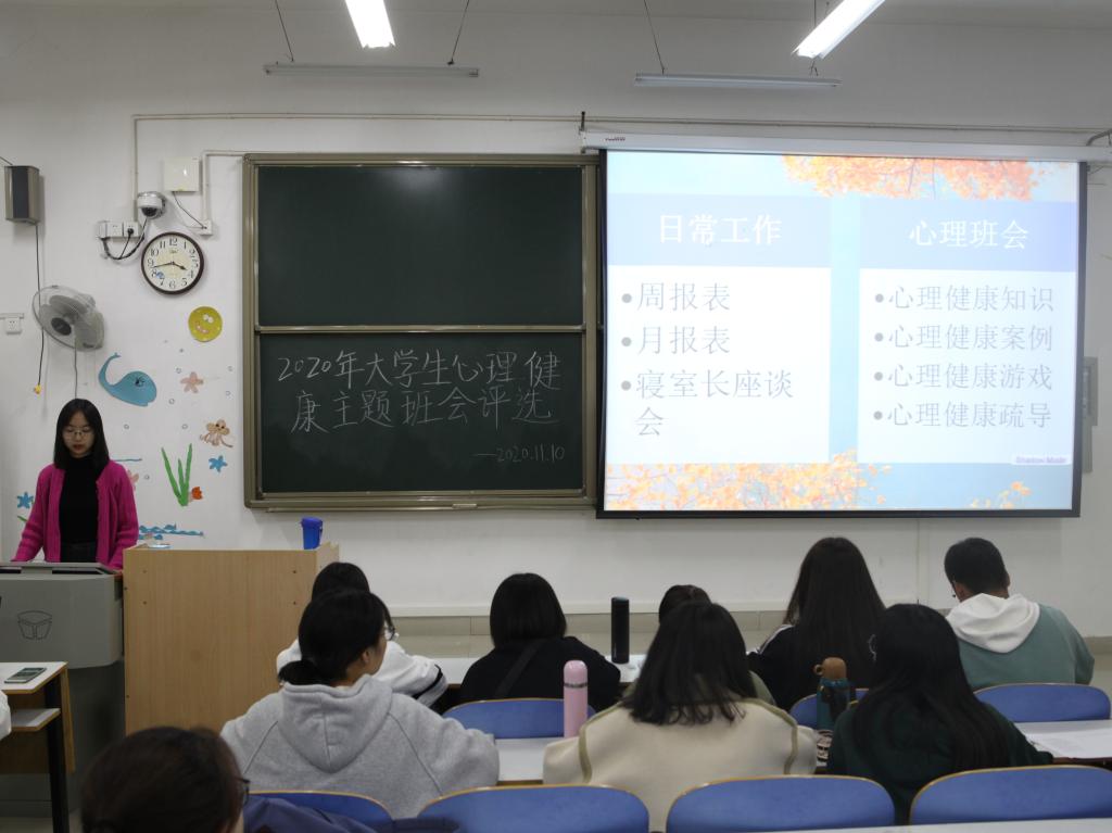 时间:2020-11-12 13:39:46 来源:太阳成集团tyc122cc 作者: 阅读: 次11月10日下午,由太阳成集团tyc122cc心理健康中心主办的教科院2020年老员工心理健康主题班会评选活动在教科楼203教室举行,2019级、2020级各班心理委员参与评选。此次评选由心理健康中心副主任张恬婧主持。