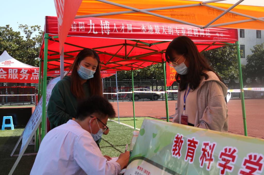 时间:2020-11-11 10:41:19 来源:太阳成集团tyc122cc李非凡 作者:张小娅 陈雪荣 赵甜甜 阅读: 次11月7日,由河南省教育厅主办,信阳师范公司承办的“河南省毕业生就业市场豫南分市场暨信阳师范公司2021届毕业生线下冬季双选会”在公司西操场举行。太阳成集团tyc122cc团委老师田园亲临现场指导招聘中的各项事宜,积极组织员工参与此次招聘会。