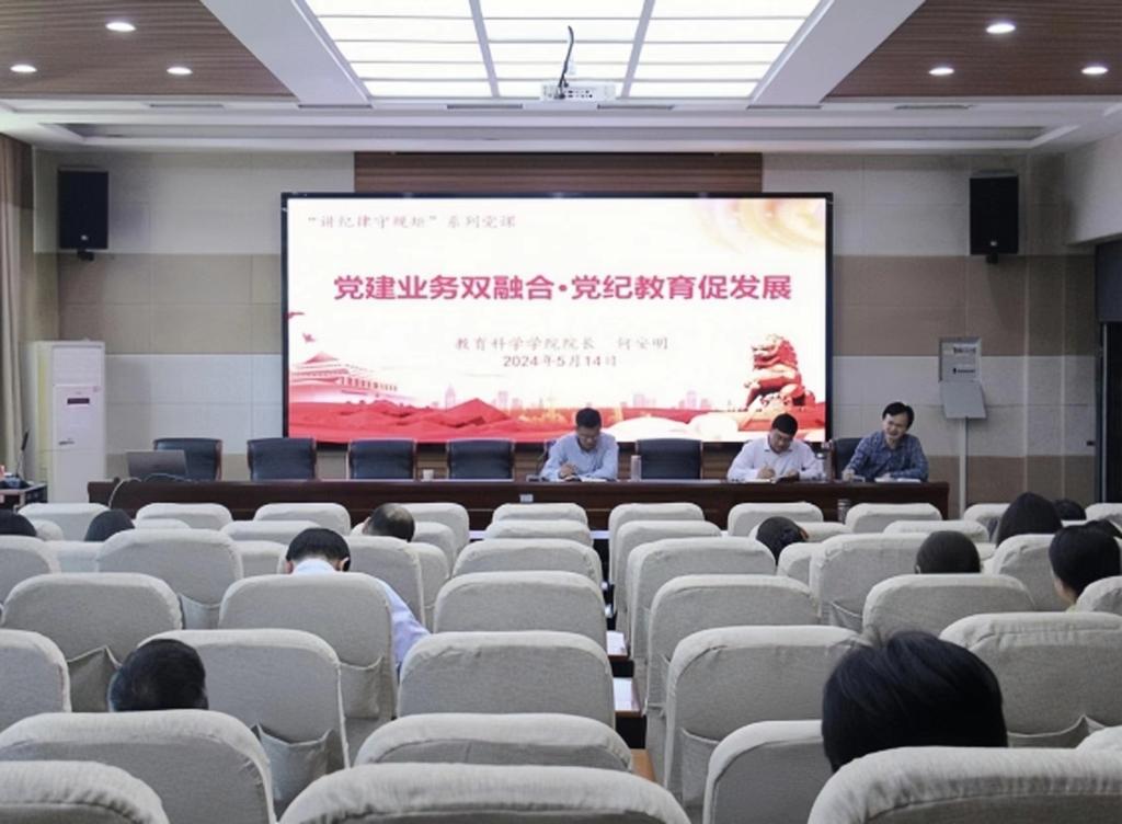 以“讲纪律,守规矩”为主题开展讲党课系列活动。5月28日,公司党委书记房加帅以《学纪、知纪、明纪、守纪》为题给党员师生上党课,理论与实践相结合,历史与现实相结合,阐释了“怎么看”、“怎么办”、“怎么干”的问题;5月21日,房加帅以《带着爱与责任再起航》为题给毕业生党员上党课,要求毕业生培养担当精神,强化底线意识,为中国式现代化挺膺担当。5月14日,经理何安明以《党建业务双融合,党纪教育促发展》为题为全院教职工上党课,强调要将党纪学习教育与师德师风建设相结合,与学科专业发展和团队队伍建设相结合,推动公司事业发展再上新台阶。分管员工工作的副书记董银银以《讲纪律、守规矩,争做新时代优秀老员工》为题、分管研究生的副经理孙天义以《成为优秀研究生的底线》为题先后为本科生党员和研究生党员上党课,引导员工党员深入学习党规党纪,发挥好模范带头作用。公司各党支部书记围绕“讲纪律,守规矩”主题分别为支部成员上党课。