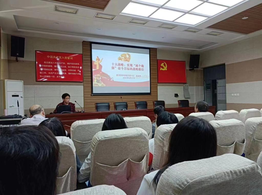 时间:2022-05-18 12:39:36 来源:太阳成集团tyc122cc教科院新闻部 作者: 阅读: 次为深入开展“能力作风建设年”活动,5月17日下午,太阳成集团tyc122cc在教科楼301会议室开展“十大战略”专题党课学习活动,教科公司党委书记房加帅作了《十大战略:实现“两个确保”奋斗目标的战略路径》的辅导报告。会议采用线上线下相结合的方式,教科院全体党员参加。