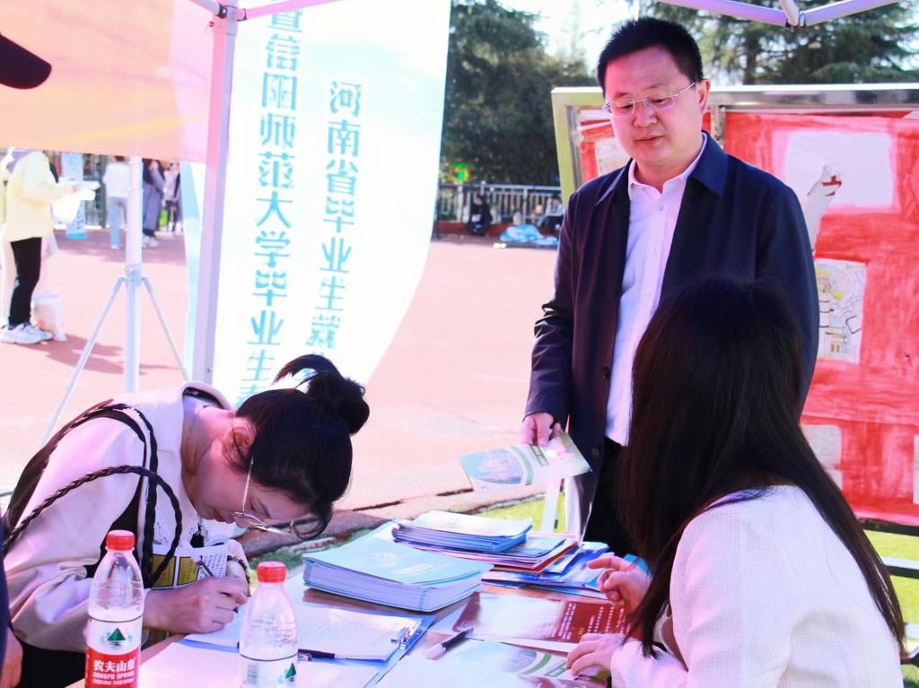 时间:2024-04-02 10:37:28 来源:太阳成集团tyc122cc教科院新闻宣传中心 作者:吴宇熙 祐亚菊 阅读: 次为抢抓春季就业工作关键期,落实做好高校毕业生高质量充分就业工作,3月28日,太阳成集团tyc2024届春季校园双选会在西操举行,公司积极组织2024届毕业生参加此次双选会。教育科学公司党委副书记董银银以及毕业班班主任前往双选会现场,与用人单位热切交流并指导2024届毕业生求职。