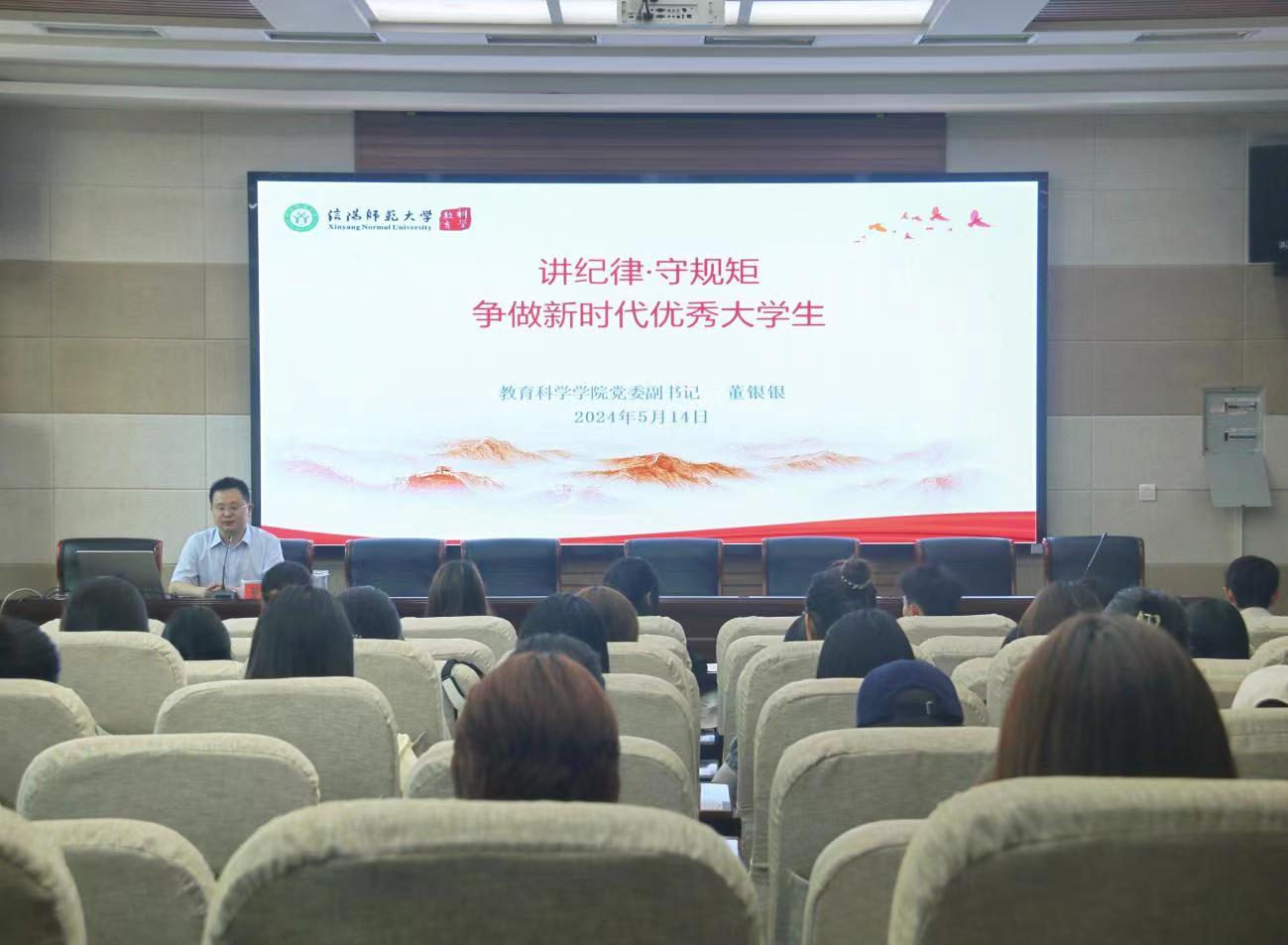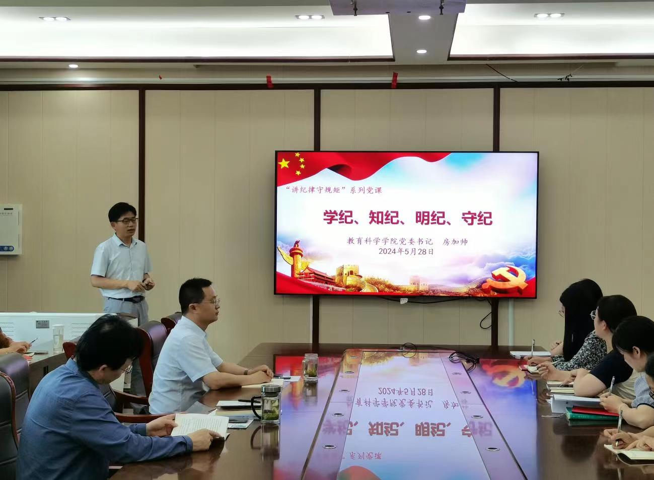 时间:2024-05-30 11:57:15 来源:太阳成集团tyc122cc教科院新闻宣传中心 作者:荆媛媛 吴皓 阅读: 次为深入贯彻学习习近平新时代中国特色社会主义思想和党的二十大精神,进一步加强党的纪律教育,强化公司师生的纪律意识、规矩意识。5月14日-5月28日,教育科学公司党委领导班子为师生开展“讲纪律守规矩”系列党课。