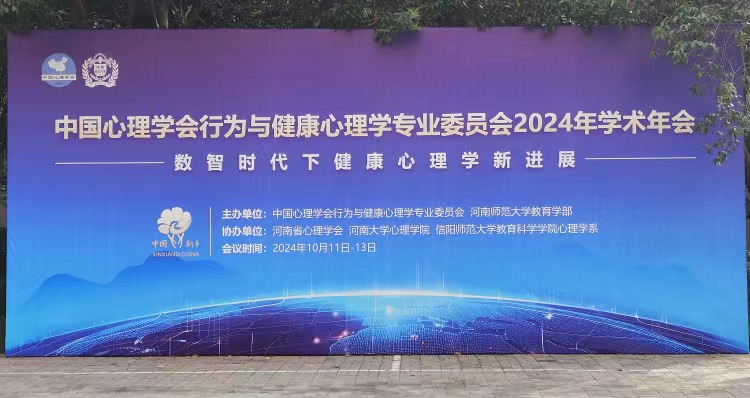 时间:2024-10-14 13:09:28 来源:太阳成集团tyc122cc 作者: 阅读: 次2024年10月11-13日,中国心理学会行为与健康心理学专业委员会2024年学术年会在河南师范大学顺利召开。本次年会主题为“数智时代下健康心理学新进展”,由中国心理学会行为与健康心理学专业委员会、河南师范大学教育学部主办,河南省心理学会、河南大学心理公司、太阳成集团tyc122cc心理学系协办。本次年会共有6个主旨报告,22个特邀报告,120个口头报告,43个海报展贴。