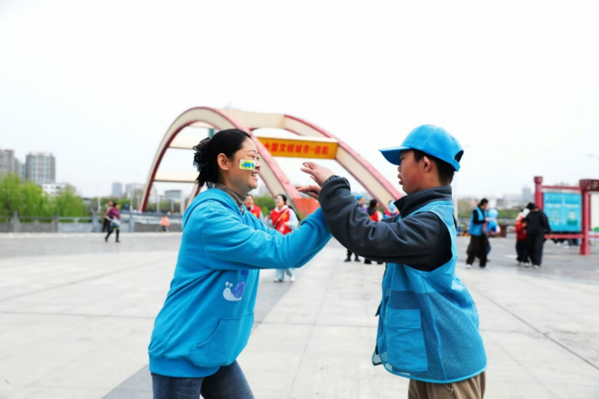 活动前,公司党委副书记缑星、专业教师朱欲晓对活动志愿者进行培训。活动当天,参与者身着蓝色马甲,象征着对孤独症团体的关爱与支持。志愿者们早早来到集合地点,脸上洋溢着热情的笑容与孩子及家长互动。上午9点整,徒步活动正式开始,大家高举写着“有爱无碍、自主自在”等标语的旗帜,从茶韵广场出发,沿浉河南部滨河步道有序进行。4.2公里的路程,志愿者拉着小朋友的手一路耐心陪伴、细心呵护。沿途的风景与温暖的互动,让孩子们的脸上渐渐绽放纯真的笑容。徒步过程中志愿者和孤独症家庭一同探访友好商户,这些友好商户早早挂上了特制的友好挂牌,通过与社区的活动进一步增强孤独症儿童的社会参与。