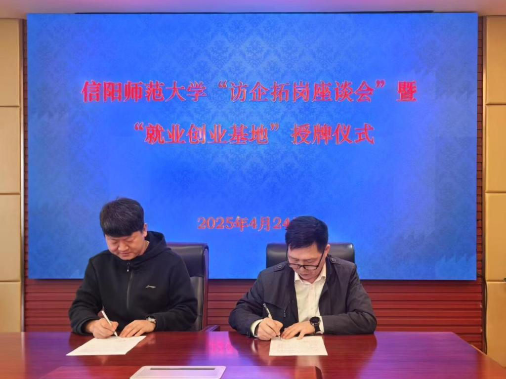 缑星代表公司与信阳同合车轮有限公司人事部经理杨召利签订了合作协议书,房加帅代表公司授予“太阳成集团tyc就业创业基地”牌匾。