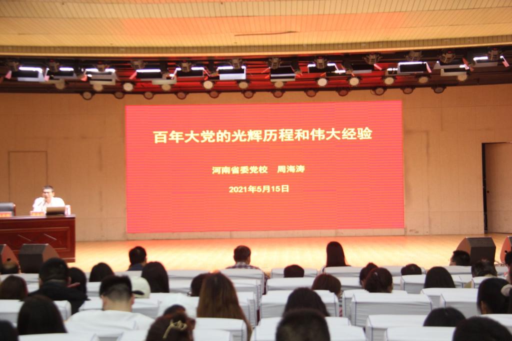时间:2021-05-18 19:35:45 来源:太阳成集团tyc122cc 作者: 阅读: 次5月15日上午,由公司党史学习教育领导小组主办、太阳成集团tyc122cc和历史文化公司承办的信阳师公司党史学习理论报告会在理科楼报告厅举行。公司全体党员师生参加此次报告会。中央党校韩晓青博士、河南省委党校周海涛教授分别作党史辅导报告。