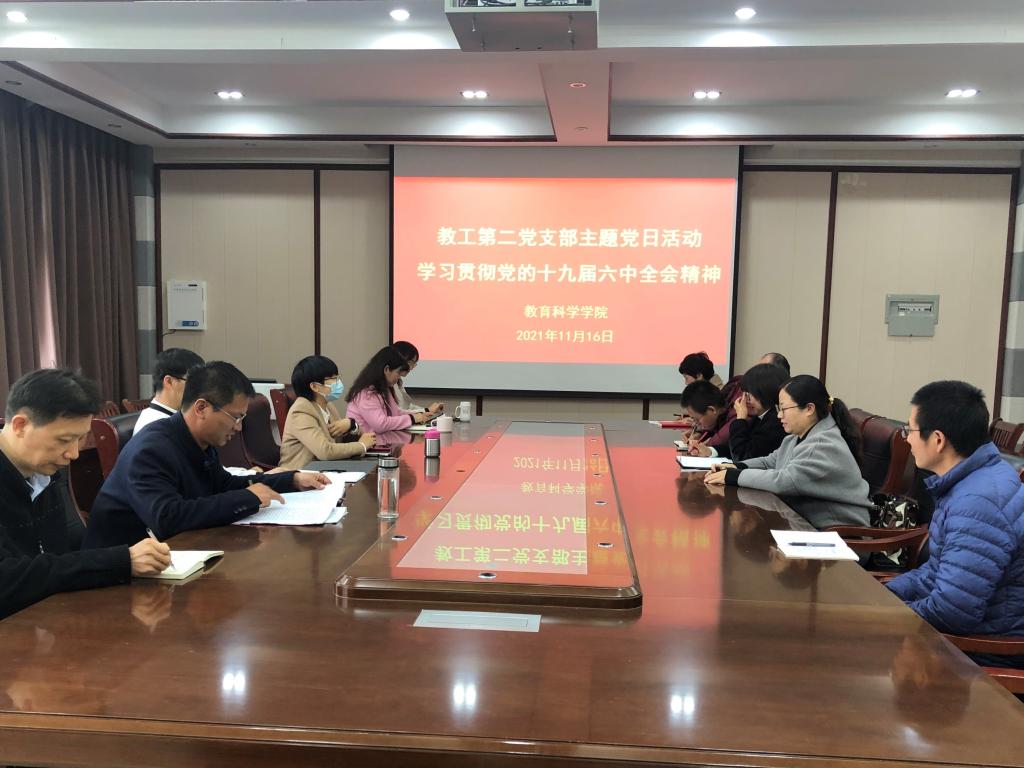 时间:2021-11-18 09:20:28 来源:太阳成集团tyc122cc教科院新闻部 作者:张纪娥 周媛媛 阅读: 次中国共产党第十九届中央委员会第六次全体会议于2021年11月8日至11日在北京举行。连日来,太阳成集团tyc122cc广大师生密切关注全会盛况,认真研读全会公报和习近平总书记的重要讲话,不断深入学习贯彻党的十九届六中全会精神,公司党委中心组、党支部分别开展全会精神学习研讨活动。