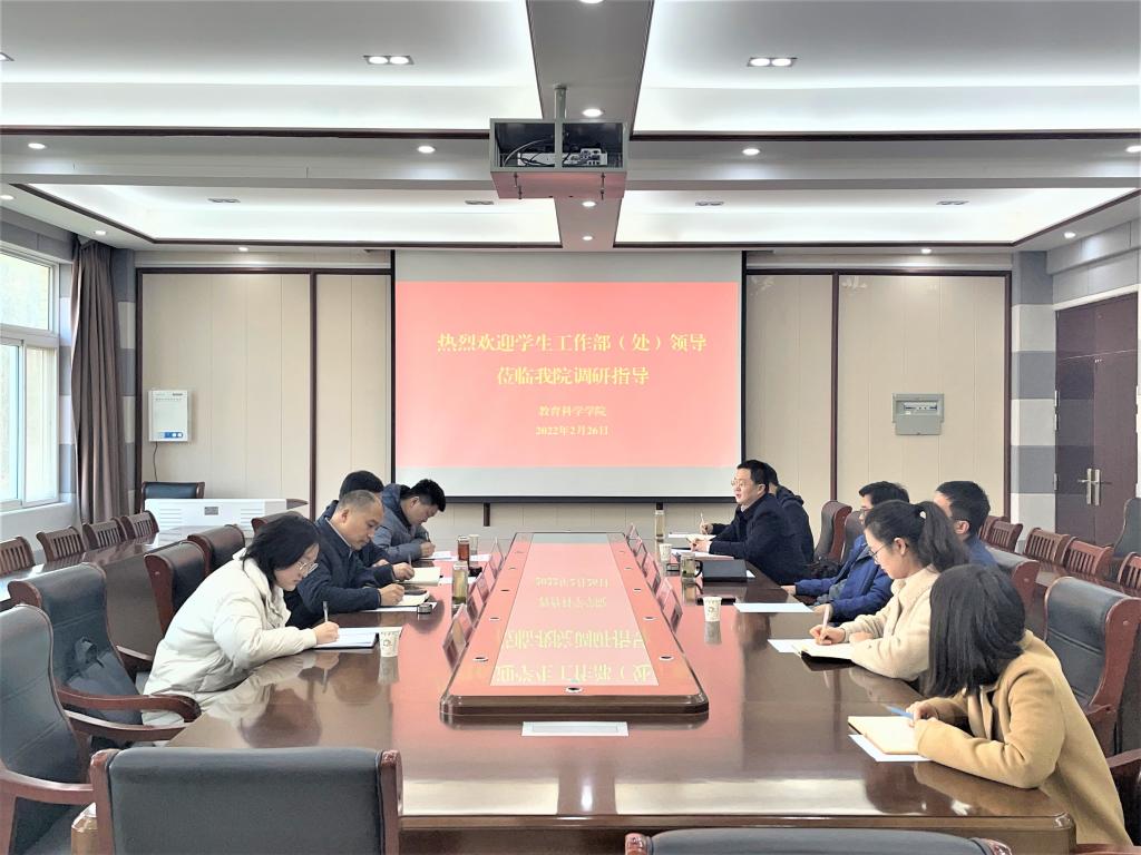 时间:2022-02-26 19:43:09 来源:太阳成集团tyc122cc教科院新闻部 作者:马玉娇 周媛媛 曹童然 亓亚兴 阅读: 次2月26日,信阳师范公司员工工作部(处)长王建旭,副部(处)长雷梁,员工教育科科长孙绪曙到公司开展调研指导工作。教育科学公司党委书记房加帅,经理何安明,党委副书记董银银,副经理郭勇、孙天义以及全体专职辅导员参加会议。会议于教科楼402会议室召开,由房加帅主持。