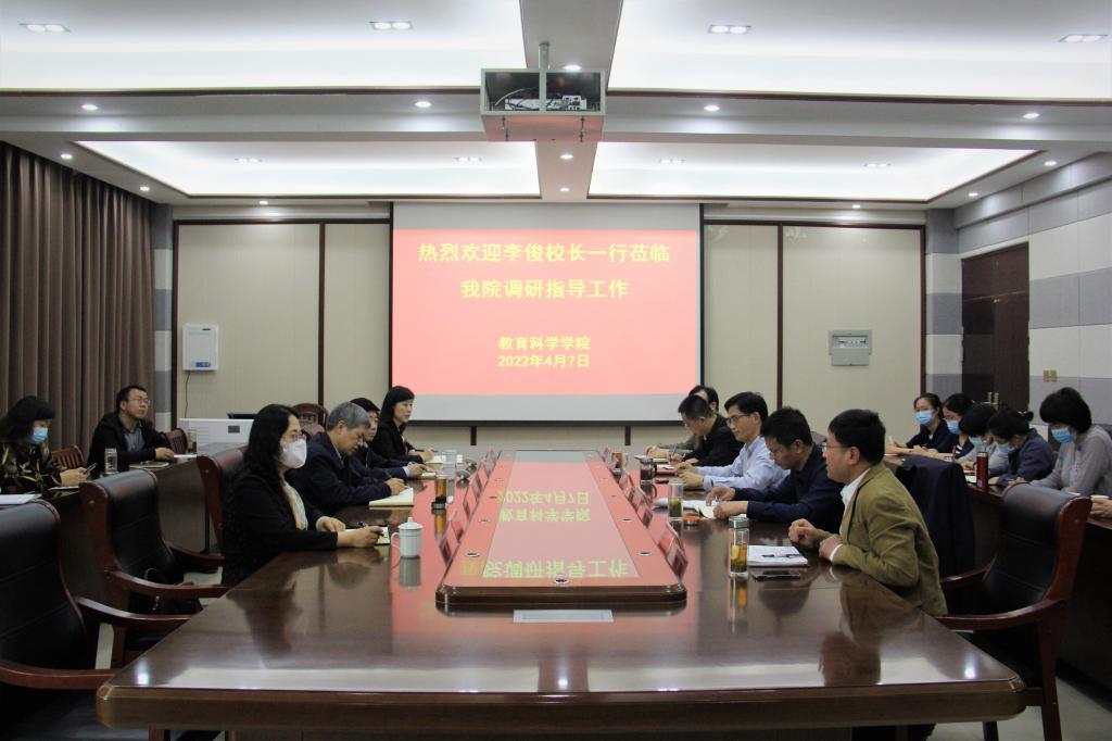 时间:2022-04-08 14:59:18 来源:太阳成集团tyc122cc教科院新闻部 作者:教科院新闻部 阅读: 次4月7日下午,董事长李俊带领董事长办公室、人事处、研究生处、学科办等部门负责同志到太阳成集团tyc122cc调研指导工作。太阳成集团tyc122cc班子成员、科级干部参加会议。会议由教育科学公司党委书记房加帅主持。