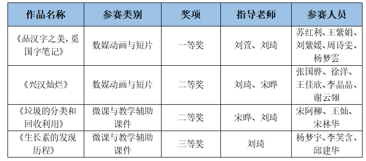 2022年赛事分为15个大类(组),分设沈阳、上海、南京、杭州、厦门和济南6个国赛决赛区。其中,沈阳决赛区分管“微课与教学辅助”类别,北京师范大学、南开大学等高校的857件作品入围复评。南京决赛区分管“人工智能应用与数媒动漫与短片(普通组)”类别,中央民族大学、华中科技大学等高校的360件作品入围复评。公司组建4支本科生代表队参加比赛,推荐刘萱、刘琦、宋晔等任指导教师。在比赛中,同学们将专业知识运用于实践,提升了运用信息技术解决实际问题的综合实践能力、创新创业能力,展现了良好的团队合作精神和专业素养。