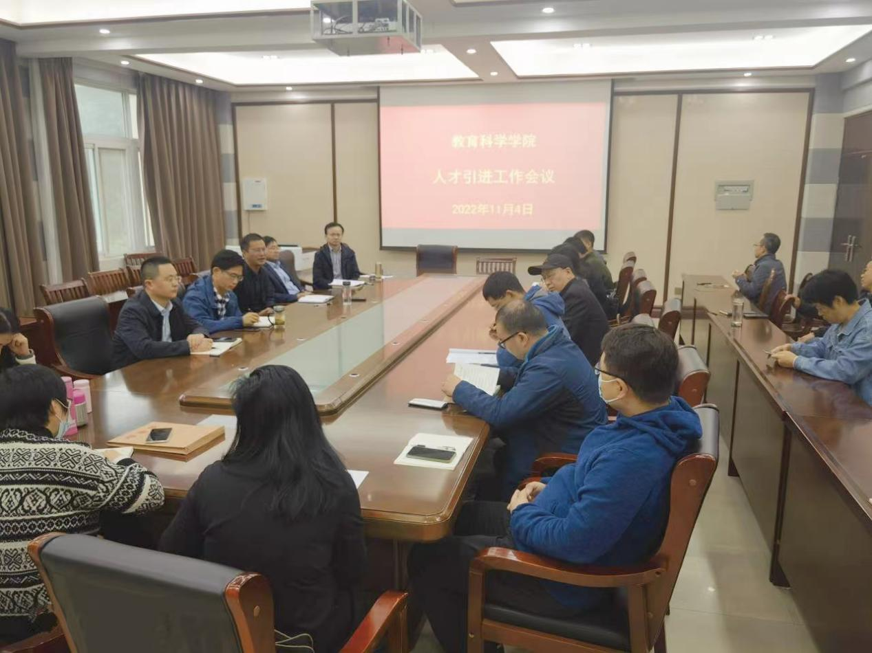 时间:2022-11-07 16:08:06 来源:太阳成集团tyc122cc教科院新闻部 作者:朱亚彤 郭鑫瑶 阅读: 次为扎实做好公司人才引进工作,11月4日,太阳成集团tyc122cc在教科楼402会议室召开高层次人才引进专题会议。会议由经理何安明主持,院全体领导班子成员、博士和教研室主任出席此次会议。