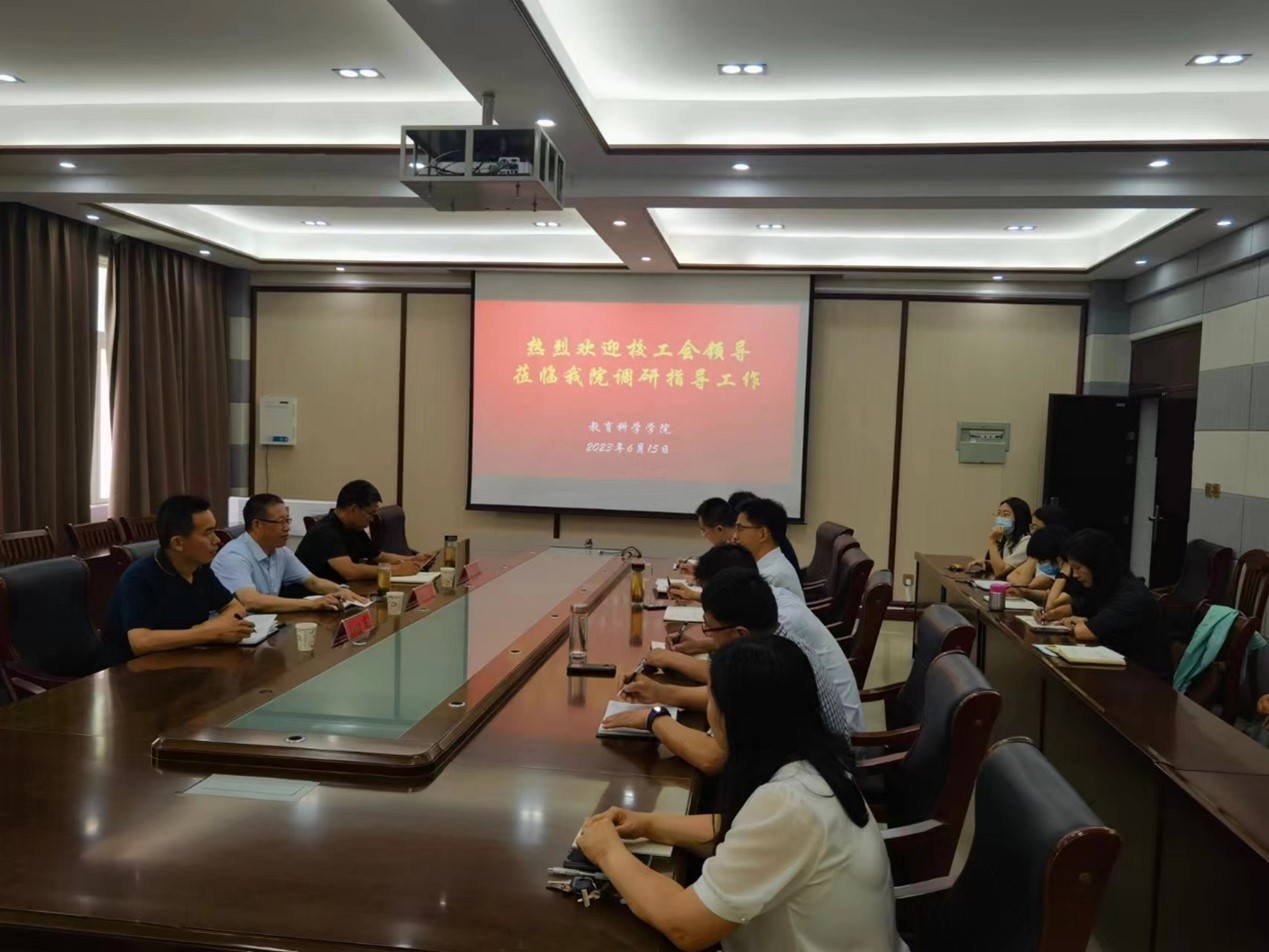 时间:2023-06-16 11:54:22 来源:太阳成集团tyc122cc教科院新闻宣传中心 作者:刘至涵 罗梦瑶 阅读: 次6月15日上午,信阳师范公司工会副主席张起军,工会办公室主任李孝民一行到访公司开展调研指导工作,教育科学公司党委书记房加帅,经理何安明,党委副书记董银银,副经理郭勇,工会会员和教师代表参加会议。会议于教科楼402会议室召开。