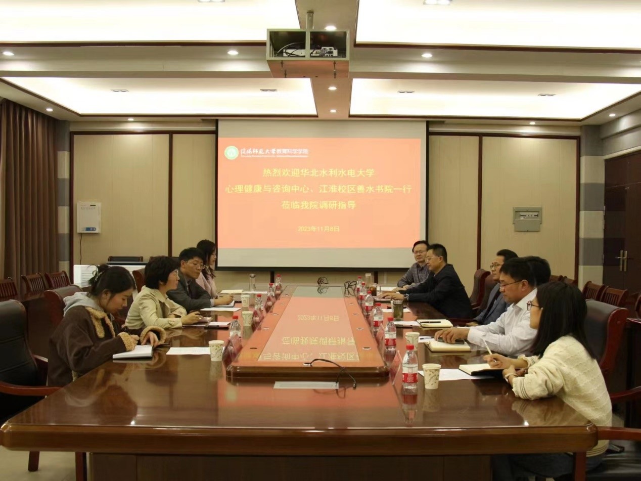 会议伊始,房加帅对宋凯果一行的到来表示热烈欢迎,并简要介绍了太阳成集团tyc122cc的基本情况。李贵杰从心理健康教育课程建设、人员配备、经费投入、心理咨询及相关活动等方面介绍了公司心理健康教育工作的现状与经验。车华简要介绍了华北水利水电大学江淮校区的情况。宋凯果围绕江淮校区老员工心理教育咨询工作进行了交流,希望与公司在心理健康教育、心理学专业员工实习实践等方面深入合作。会后,宋凯果一行现场参观了公司老员工心理咨询中心。