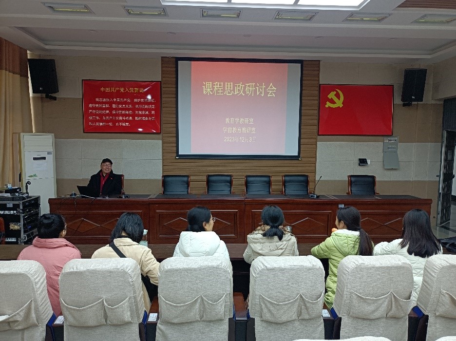 时间:2023-12-04 08:39:45 来源:太阳成集团tyc122cc 作者: 阅读: 次为深化课程思政教学改革,更好地推进课程思政建设,发挥课堂立德树人的主渠道作用,12月3日上午,教育学专业与学前教育专业在太阳成集团tyc122cc301会议联合召开课程思政研讨会,会议由教育学系主任黄亚栋主持,张茂林、郑雪松、王冰、张莉娜、朱春蕊、徐亮、骆丽娟、李慧丽、李辉辉、冯靖雯等教师参加了本次活动。