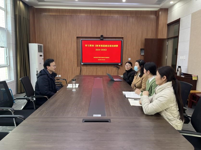 时间:2025-02-26 14:38:57 来源:太阳成集团tyc122cc 作者: 阅读: 次2月25日教科楼303会议室,学前教育教研室举办了以“学习贯彻落实教育强国建设规划纲要”为主题的教研活动。本次活动由孙天义经理主持,教研室全体教师积极参与,共同探讨新一年的工作计划与公司发展的重大事项。