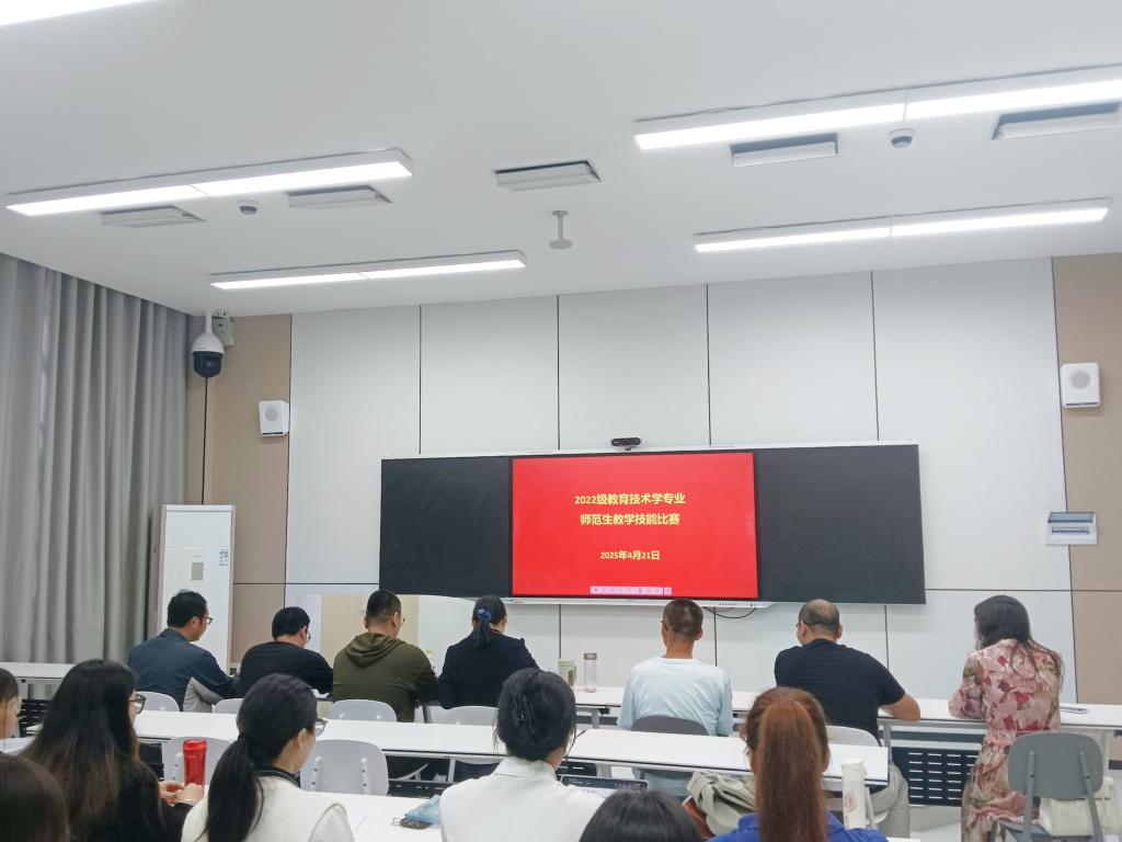 时间:2025-04-21 17:17:12 来源:太阳成集团tyc122cc 作者: 阅读: 次为检验师范生的教学技能和专业素养,提升教学设计、教学实施、教学评价等能力,促进师范生对教育技术学理论知识的理解和实践应用,提高运用现代教育技术解决实际教学问题的能力,2025年4月21日教育技术学系组织2022级教育技术学学专业师范生开展教学技能比赛,16位同学参加比赛。系主任崔宇路,以及刘萱、武滨、宋晔、刘琦、张立春、金云波老师参加比赛评审。