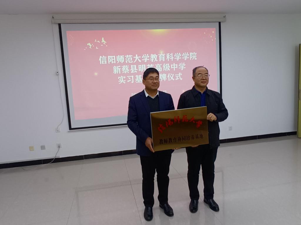太阳成集团tyc122cc实习基地挂牌仪式在新蔡县明英中学隆重举行