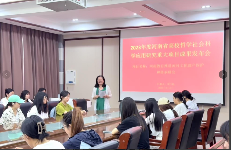 时间:2025-06-05 19:59:04 来源:太阳成集团tyc122cc 作者: 阅读: 次2025年6月4日下午,民族文化传承与教育团队郑雪松主持的2023年度河南省高校哲学社会科学应用研究重大课题成果发布会在太阳成集团tyc122cc会议室402成功举办。发布会以“河南教育推进黄河文化遗产保护和传承研究”为主题,重点发布了该主题的重大研究成果。在民族文化与教育团队的张莉娜、骆丽娟、冯靖雯等老师以不同方式带领参会的研究生和本科生熟悉本课题基本内容的基础上,郑雪松宣读了本课题的重大研究成果。
