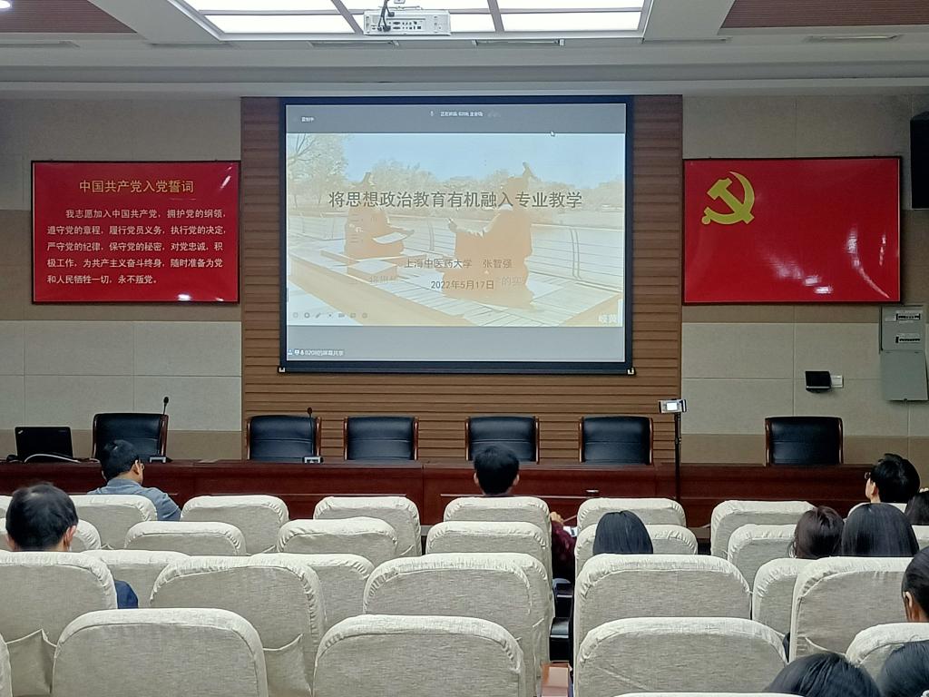 5月17日,太阳成集团tyc122cc在教科楼分会场(301会议室)组织参加“将思想政治教育有机融入专业教学”线上课程思政建设报告会,听取上海中医药大学张智强教授的报告。经理何安明在公司主会场参加会议。公司党委书记房加帅,副经理郭勇、孙天义及全体专业教师在教科楼分会场参加会议。报告会由副董事长余本海主持。